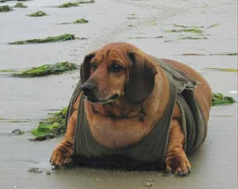 The poor dog looked like it had swallowed a large helium balloon. I won’t rewrite the story, but the dog became overweight by the well-intentioned actions of its elderly owners — and it took more than two years (and plastic surgery to remove the extra skin — which weighed more than two pounds) to get the dog healthy again.