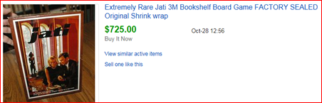 During the 1960s 3M (the company that gave us Post-It Notes) created a series of games known as Bookshelf Games. They were designed in such a way that all the playing pieces, boards and instruction fit in a box designed to be displayed on your bookshelf. The games ranged from strategy games to games of luck, but one game always attracts the attention of board game collectors: Jati.