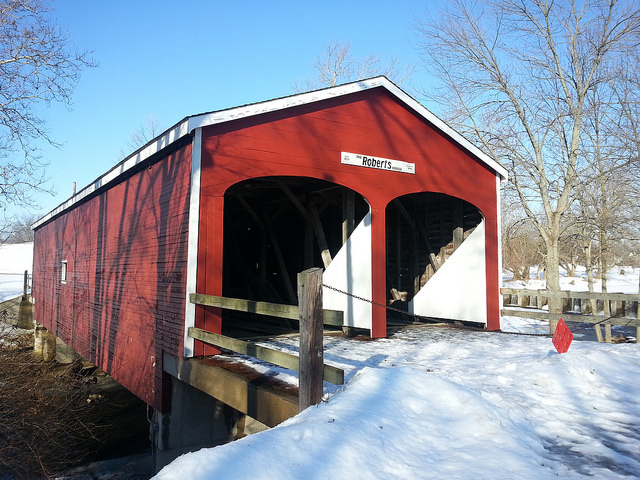 Roberts Bridge was restored after vandals set it on fire in the late 1980s/early 1990s. The incident led to the restoration of all the county’s covered the bridges with efforts to make them flame resistant.